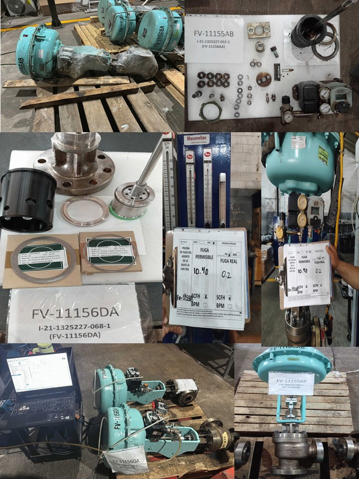 Desensamble de Cuerpo-Actuador, proceso de Sand-Blast y rectificado o reemplazo de partes blandas y duras. Ensamble de Cuerpo-Actuador para Pruebas de Hermeticidad e Hidrostática. Calibración en Banco de Pruebas.